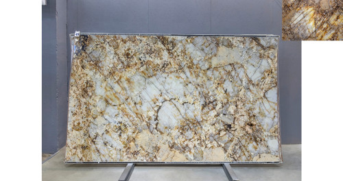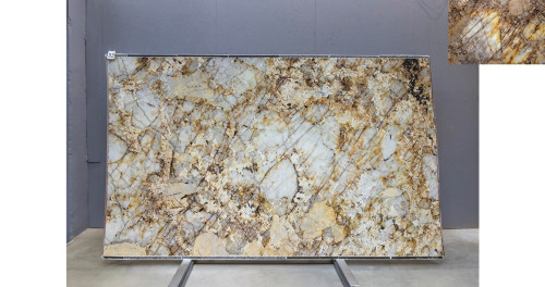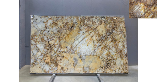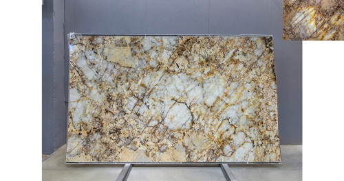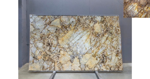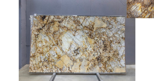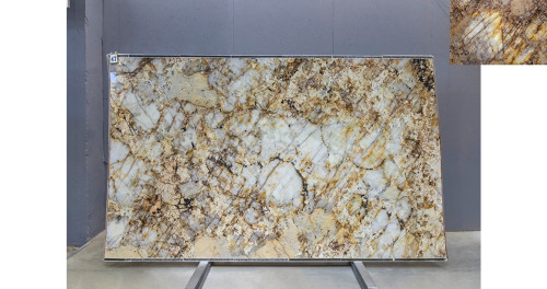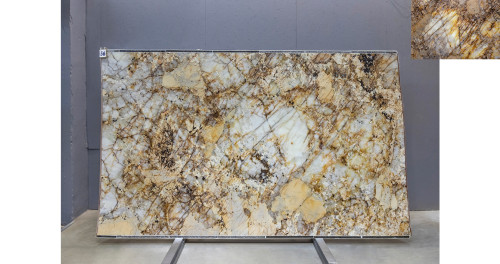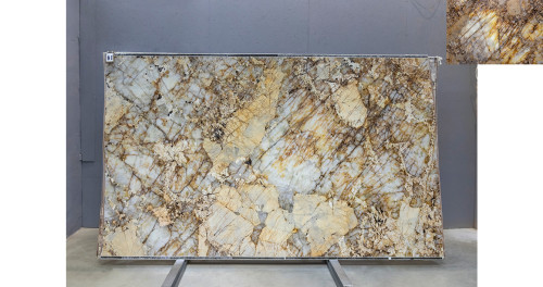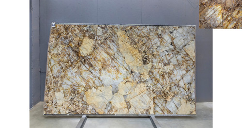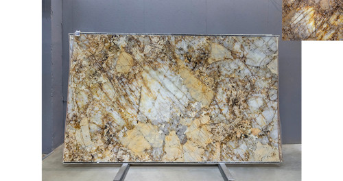 Слэб из Кварцита Патагония Кристал Голд может быть использован для создания стильных столешниц, а также для отделки стен и полов. Это практичное решение для тех, кто ищет надежный и красивый материал для внутренней отделки.